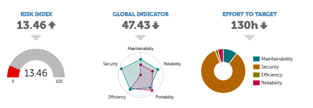 de mantenibilidad, complejidad y deuda técnica acumulada. Con ello se puede evaluar equipos de trabajo y la distribución de carga entre ellos. (Deuda Técnica equivale al cumulo de errores en el código fuente
